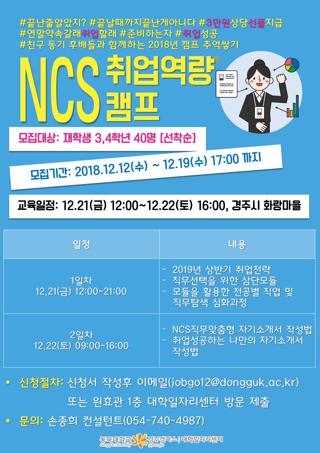 [추가모집][대학일자리센터] 2018학년도 NCS취업역량캠프 참가자 모집 안내