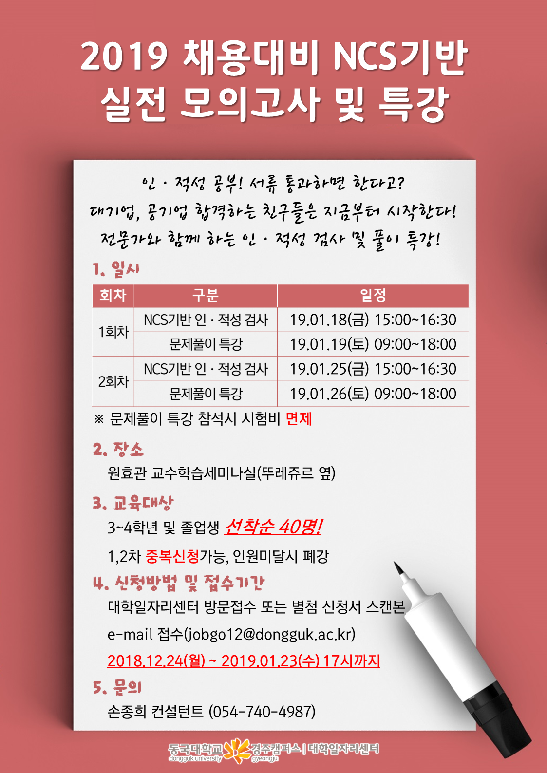 [대학일자리센터] 2019 채용대비 NCS기반 실전 모의고사 및 특강 참가자 모집 안내