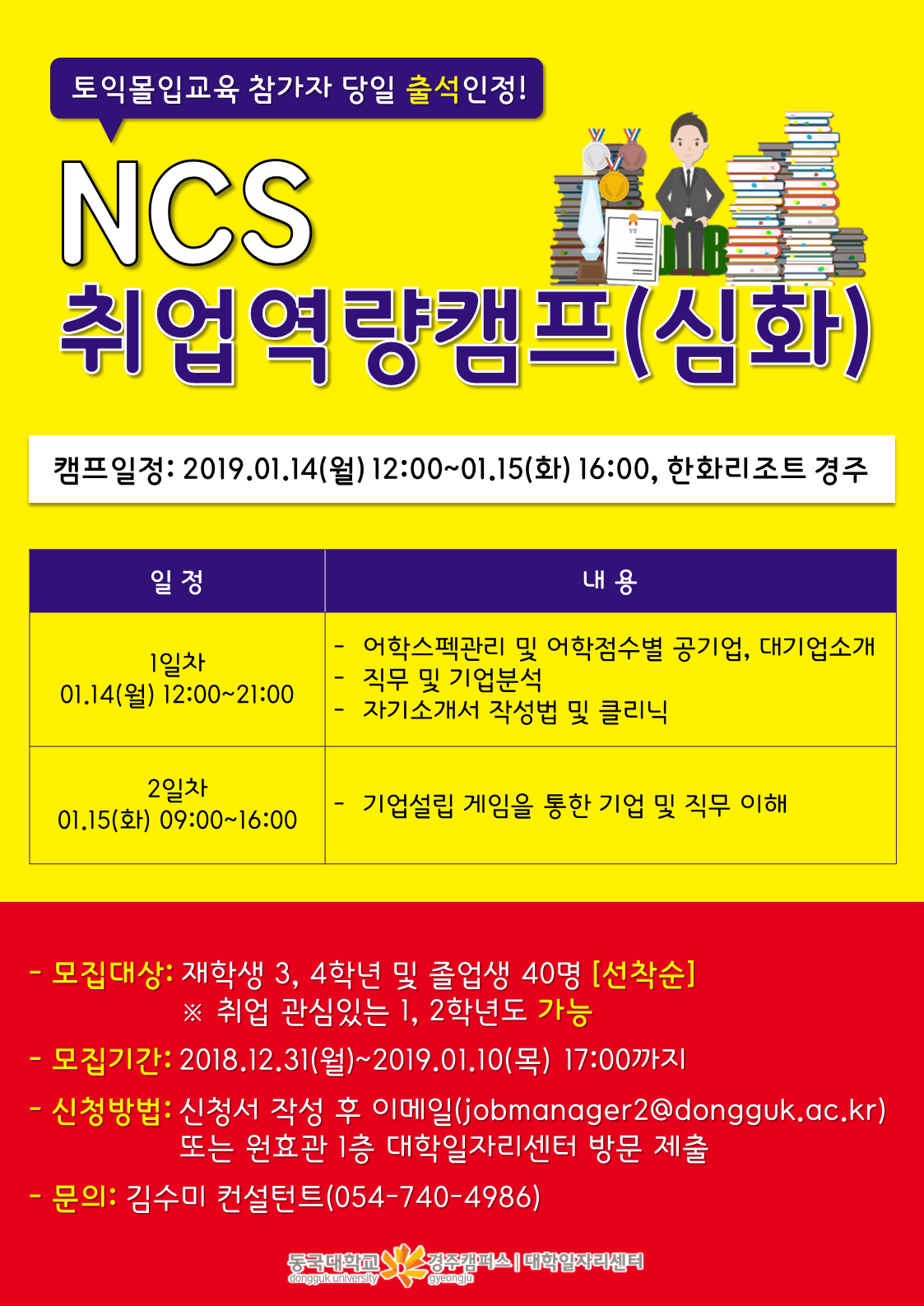 [대학일자리센터] 2018학년도 NCS취업역량캠프(심화) 참가자 모집 안내