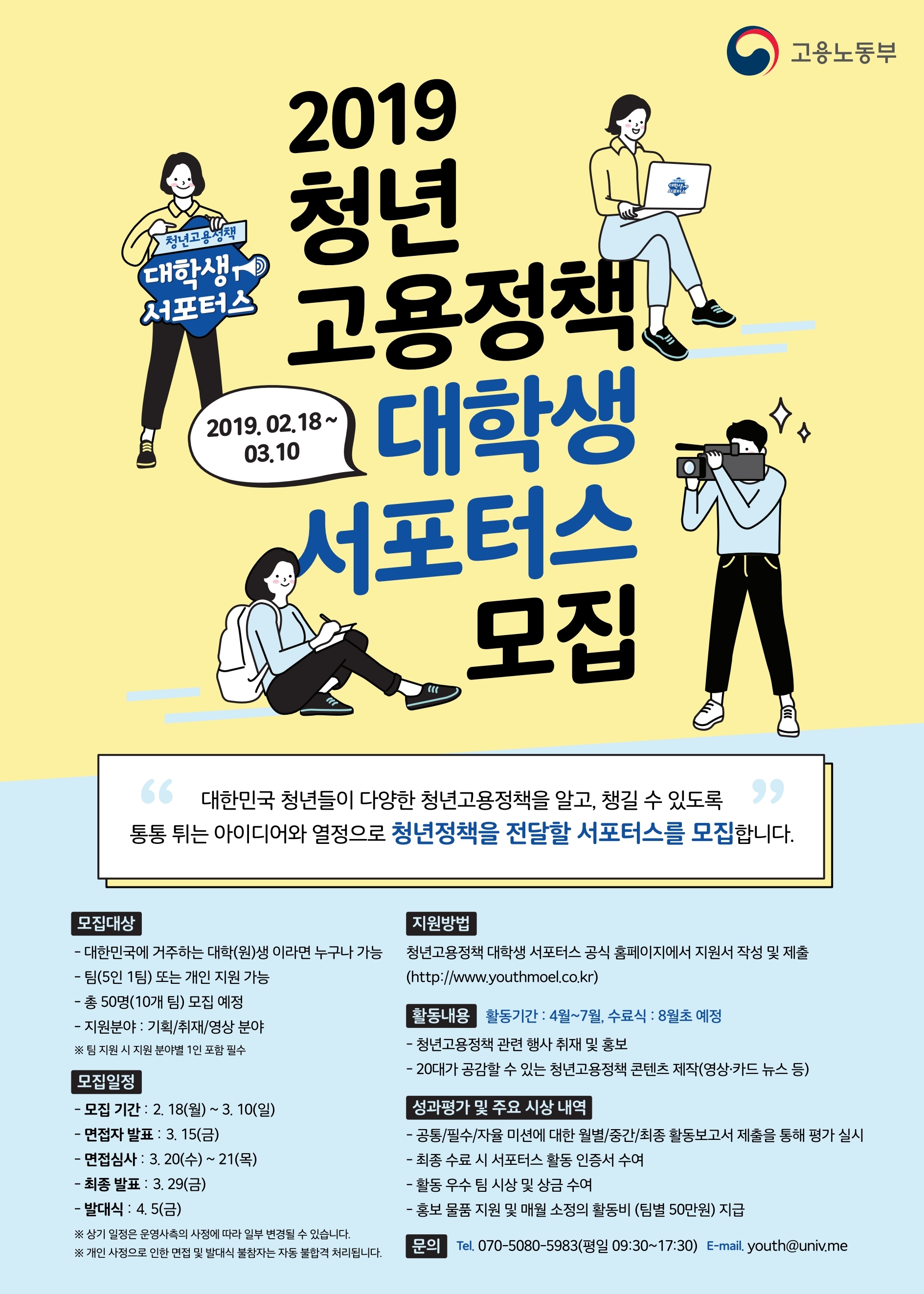 2019 청년고용정책 대학생 서포터즈 모집