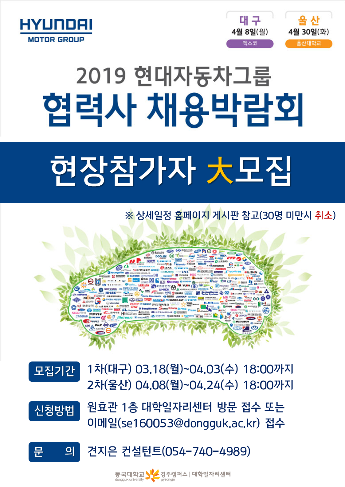 [대학일자리센터] 2019 현대자동차그룹 협력사 채용박람회 현장참가자 모집
