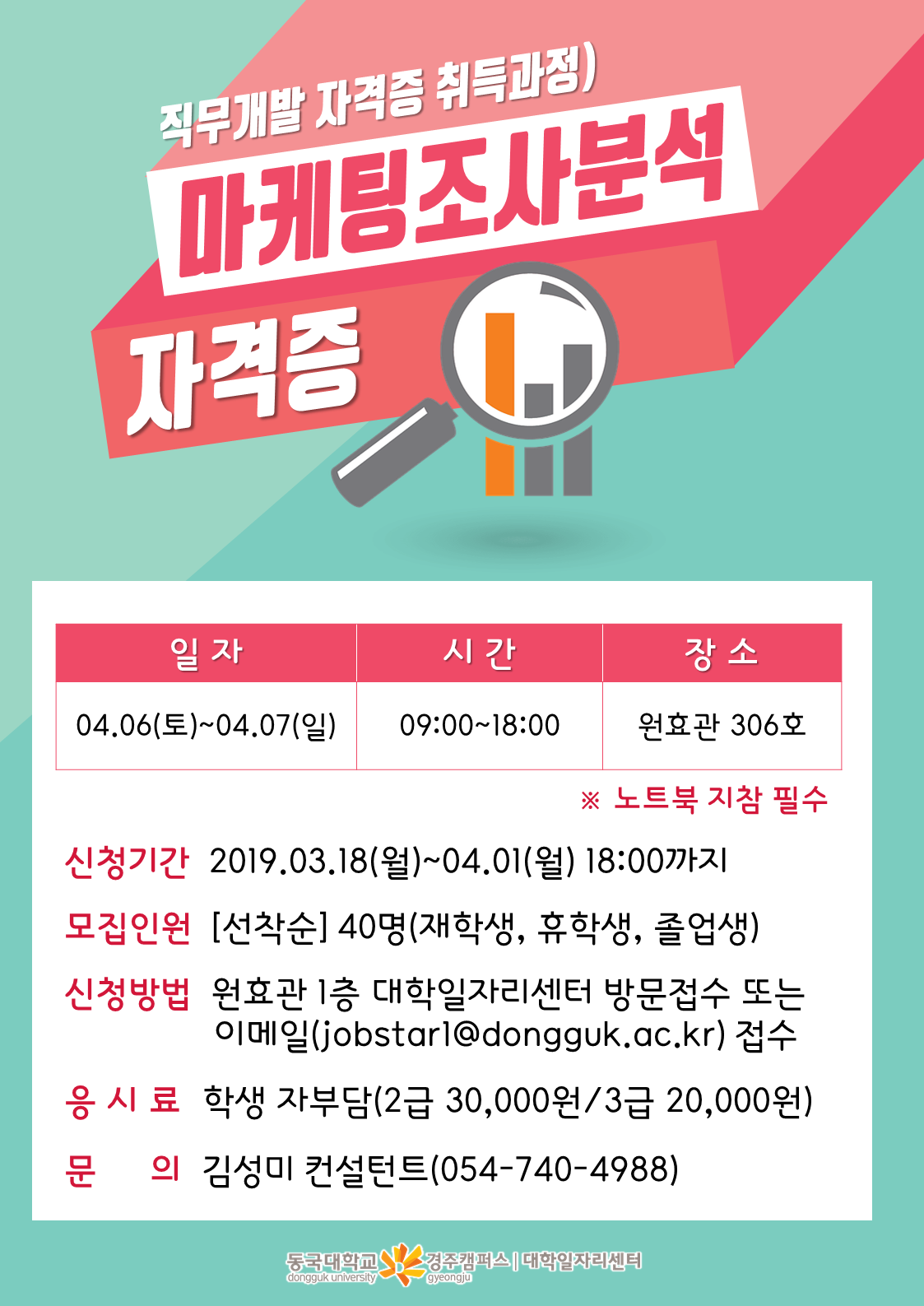 [대학일자리센터] 마케팅조사분석사 자격증 취득과정 참가자 모집