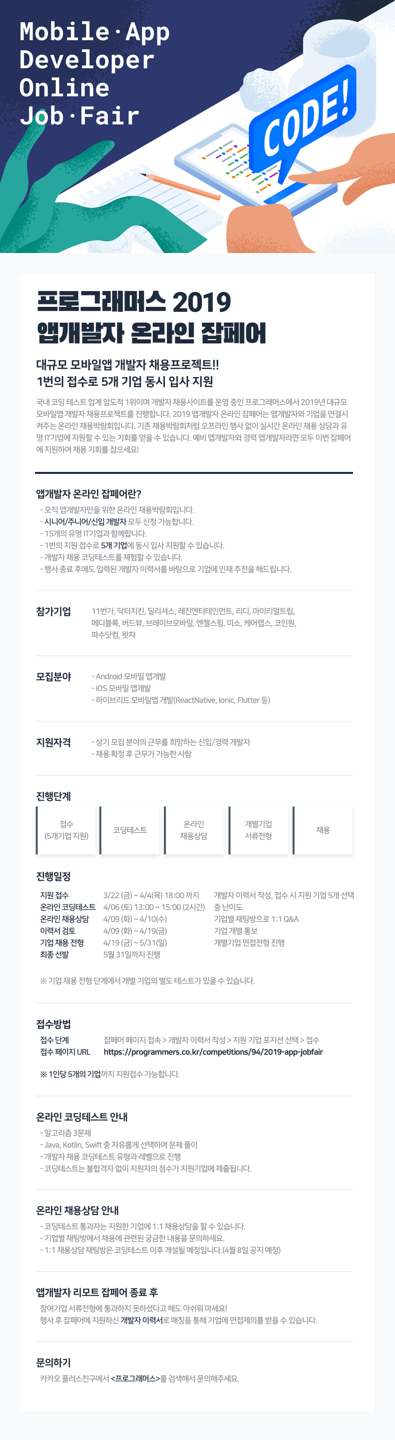 프로그래머스 2019 앱개발자 온라인 잡페어