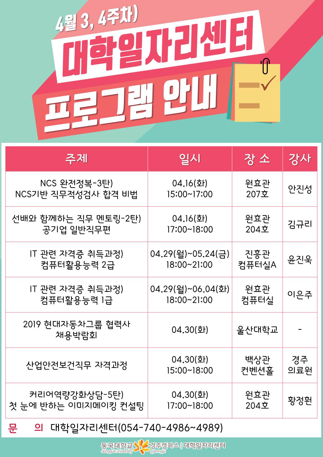 [대학일자리센터] 4월 3, 4주차) 대학일자리센터 프로그램 안내