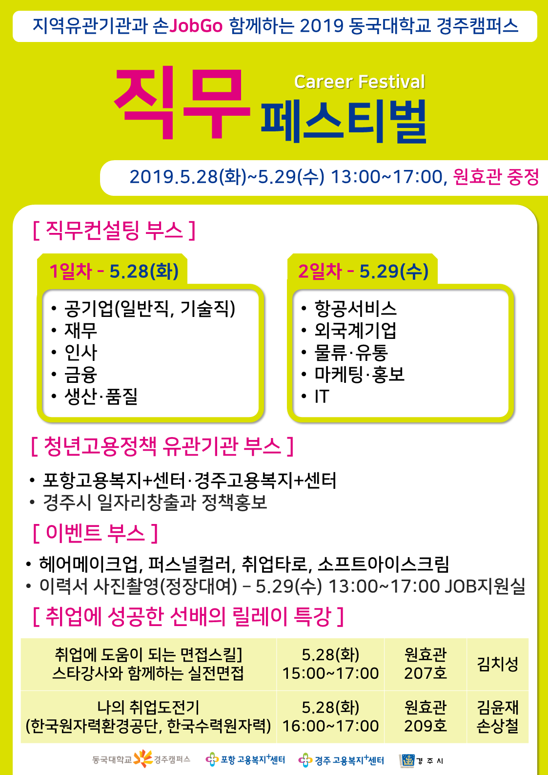 2019학년도 1학기 직무 페스티벌(Career Festival)을 다음과 같이 시행하오니 많은 참여 바랍니다