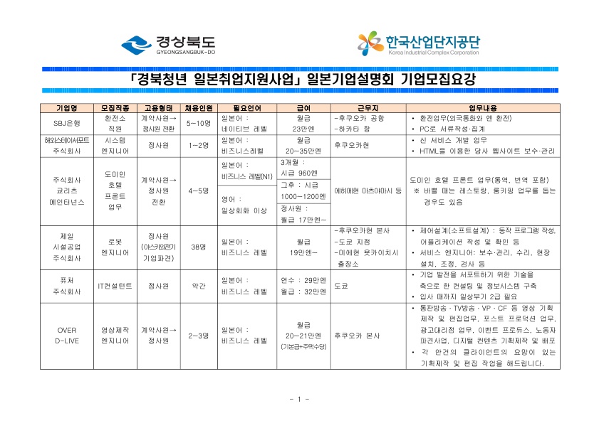 [교외-경상북도&한국산업단지공단] 경북청년 일본취업지원사업에 따른 일본기업 설명회
