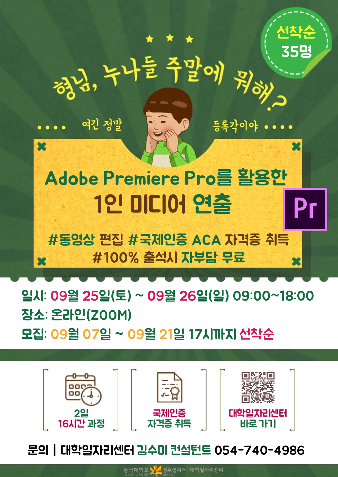 [대학일자리센터] 직무개발 자격증 취득과정(ACA 자격증-Premiere Pro) 참가자 모집