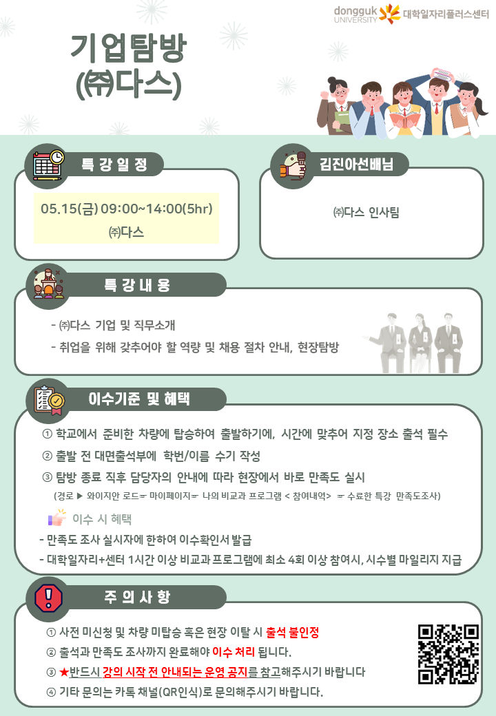 [대학일자리+센터] 기업탐방(㈜다스) 참여자 모집