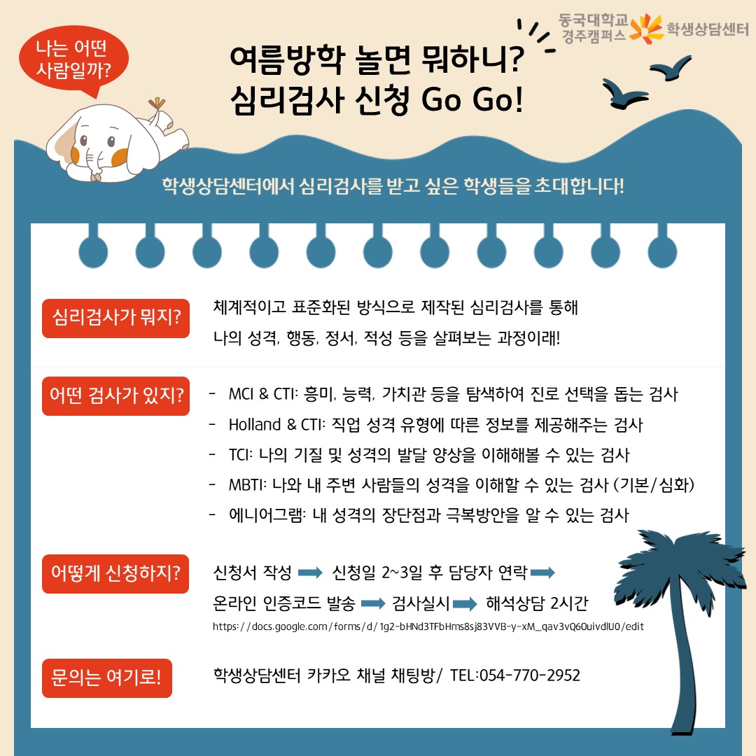 [학생상담센터]여름방학 놀면 뭐하니?심리검사 GOGO!