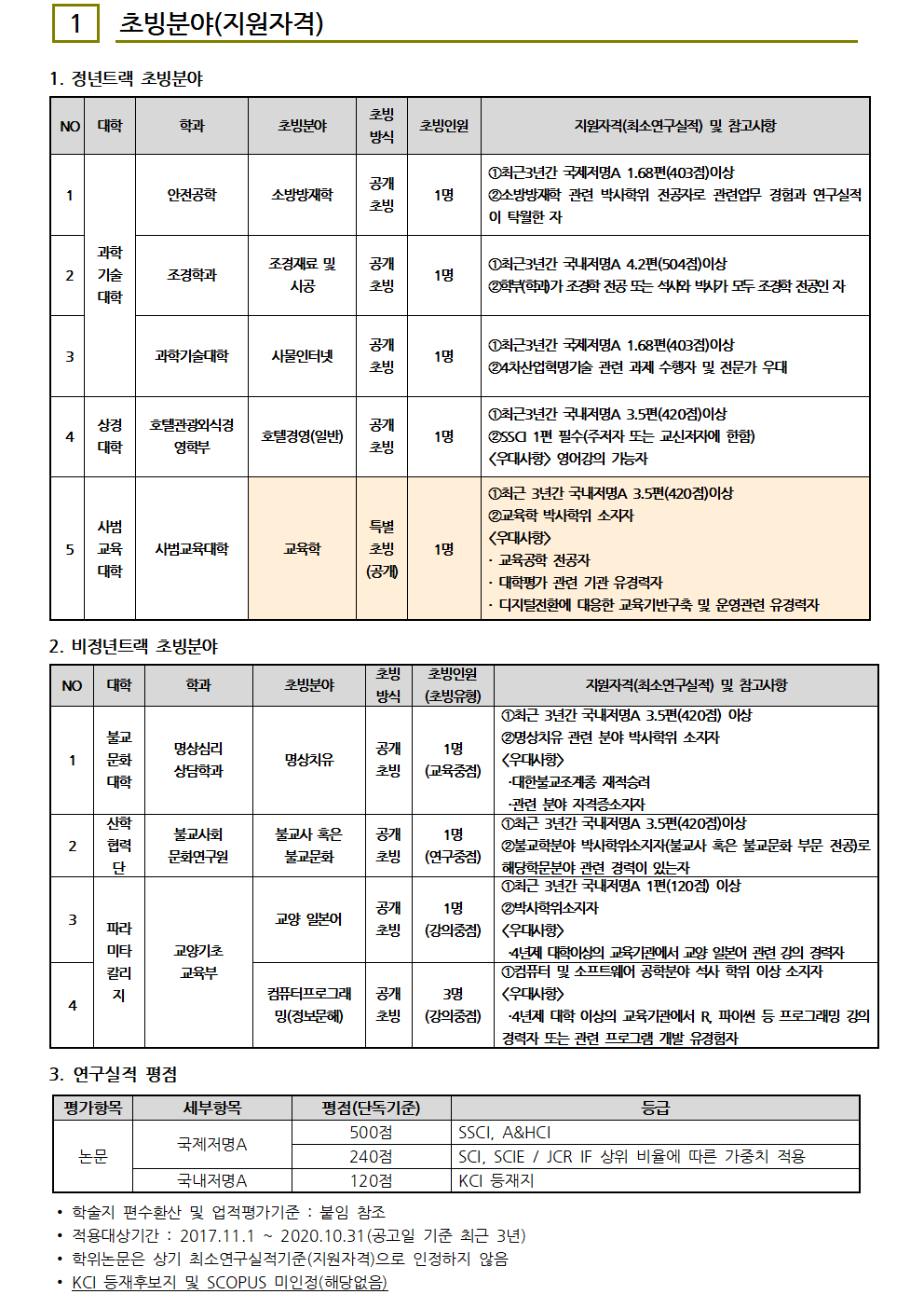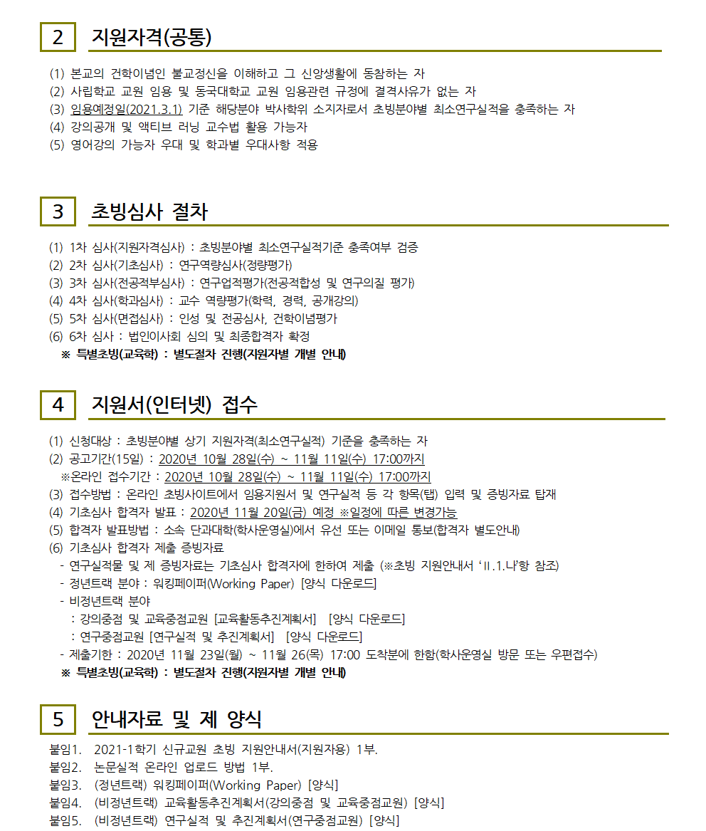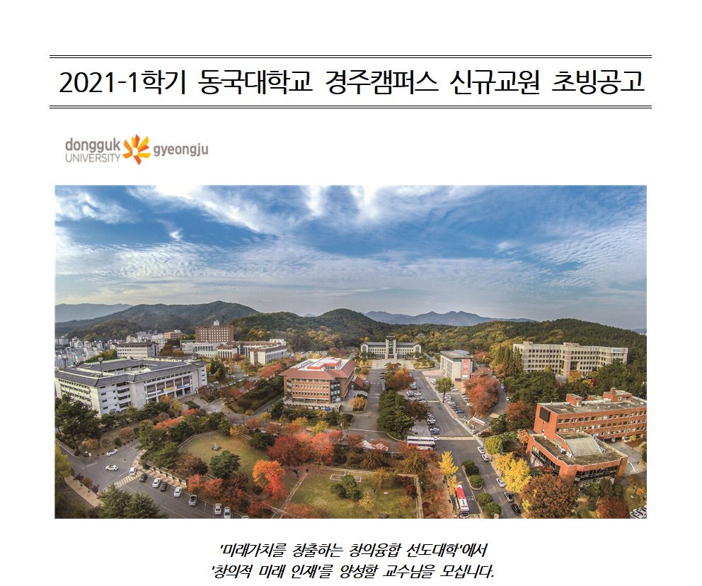 2021-1학기 동국대학교 경주캠퍼스 신규교원 초빙 공고