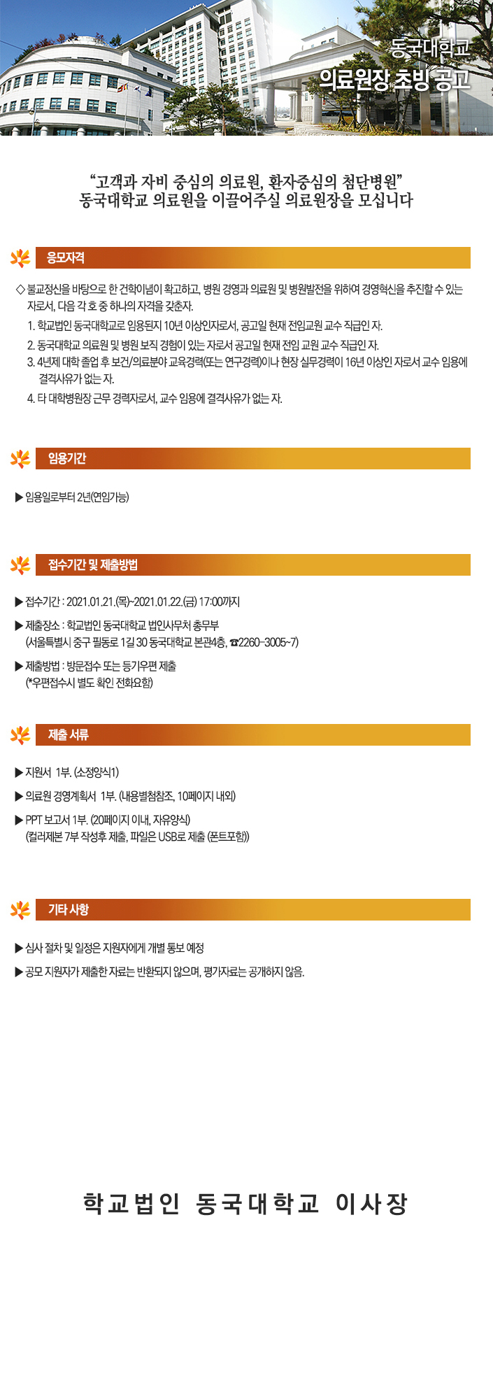 동국대학교 의료원장 초빙 공고