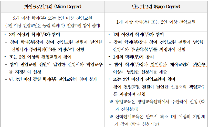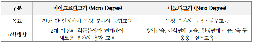 나. 학생들이 필요한 분야의 지식 및 기술을 단기간 내 습득할 수 있는 유연한 교육과정 도입 및 운영