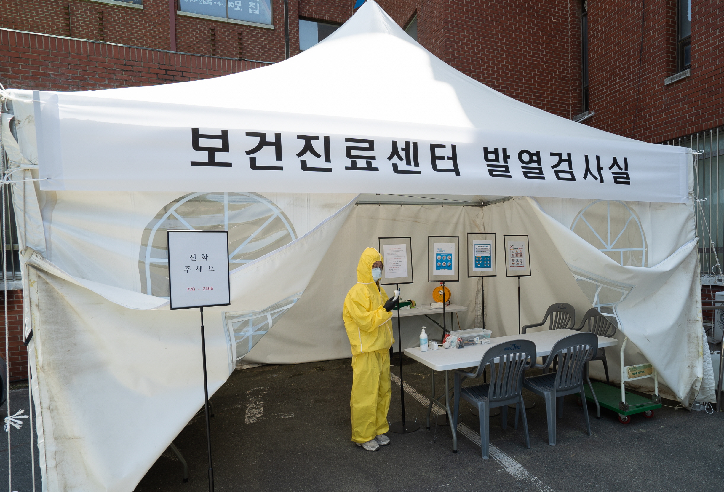 건물 출입구에는 교직원으로 구성된 비상 근무팀과 열화상 카메라가 배치되어, 출입자의 발열 여부를 확인한다.
