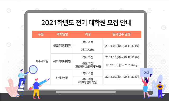 동국대학교 경주캠퍼스는 2021학년도 전기 특수대학원 신(편)입생을 모집한다.