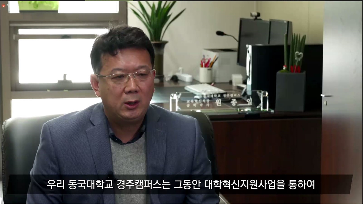 <온라인을 통해 인사말을 하고 있는 원종일 동국대 경주캠퍼스 교육혁신처장>