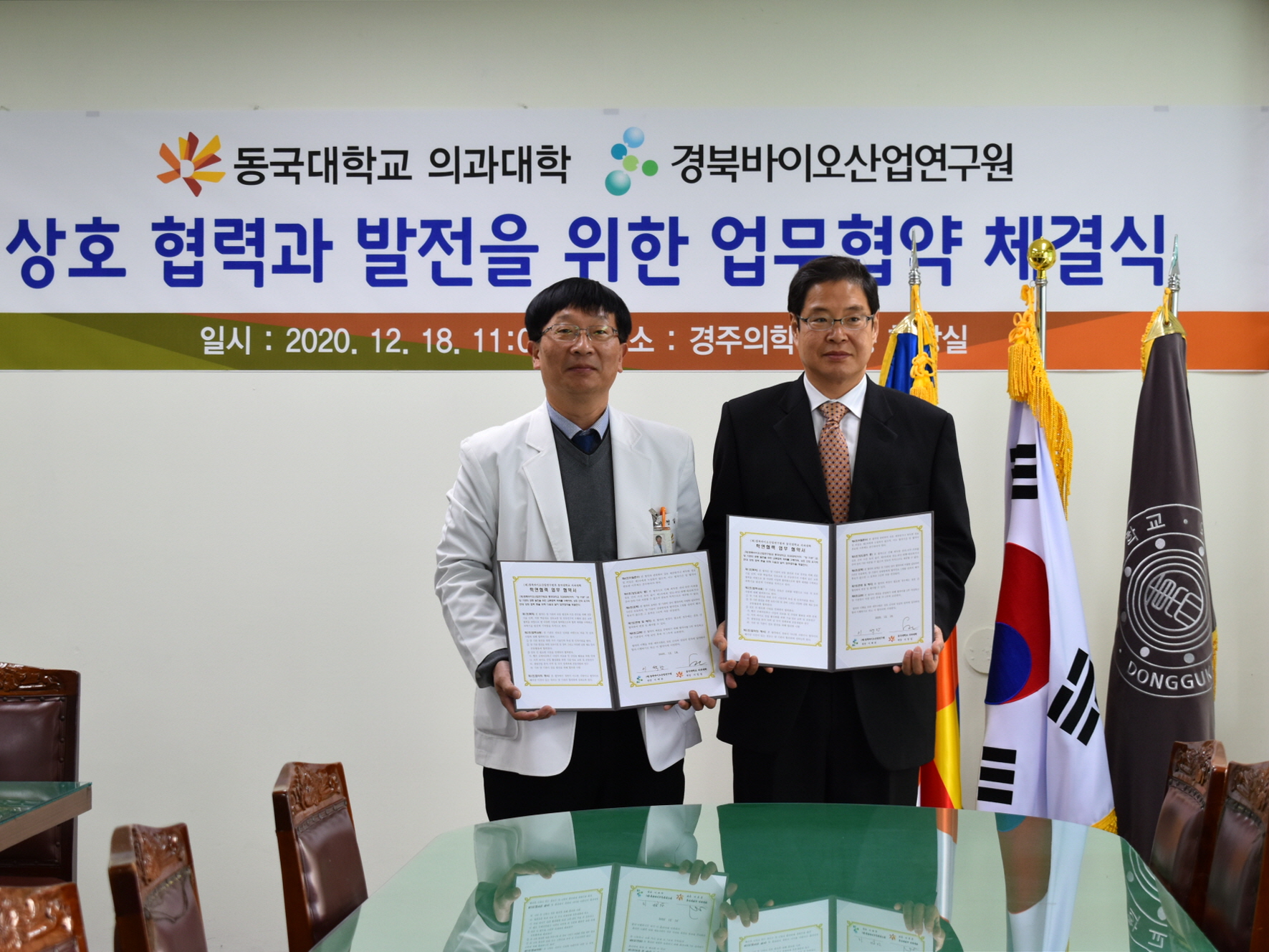 동국대학교 의과대학은 (재)경북바이오산업연구원과 지난 18일 오전 11시 교내 의학관에서 학연협력 업무협약을 맺었다.