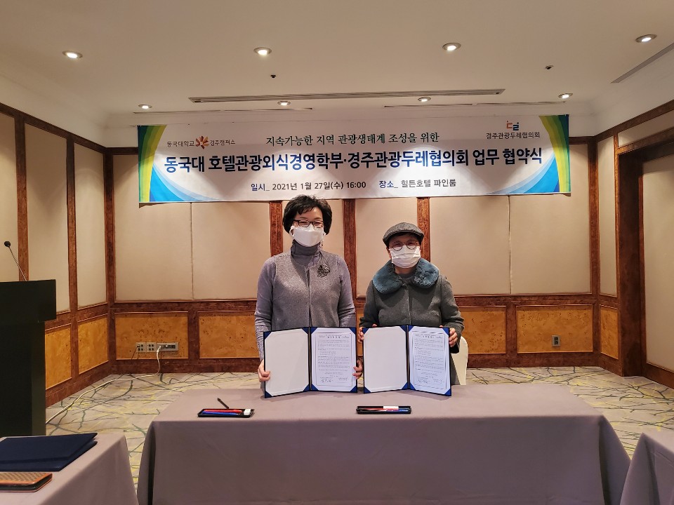 호텔관광외식경영학부와 경주관광두레협의회는 지역관광사업체 컨설팅 및 운영지원, 지역관광인력 양성을 위한 교육사업의 협업, 지역관광관련 연구자료 및 연구 성과 공유, 기타 양 기관 협력 가능한 상호 관심사항에 대해 상호 협력하기로 했다.