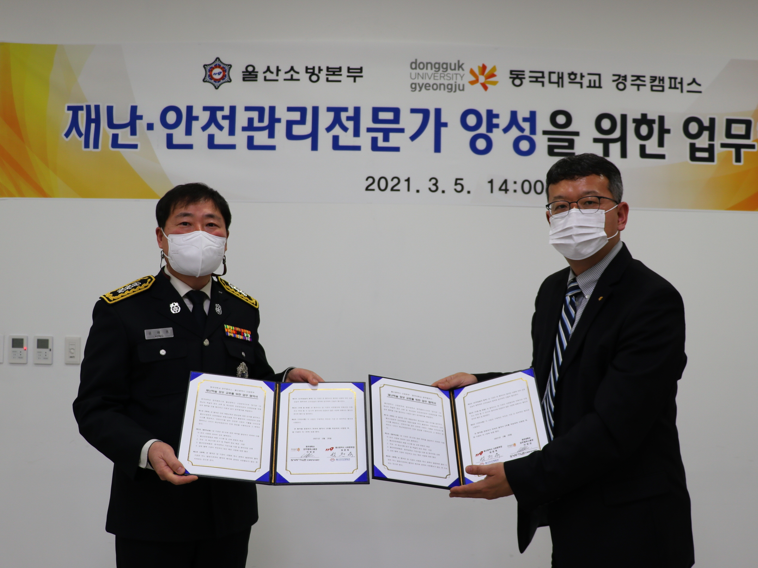 동국대 경주캠퍼스는 지난 5일 울산 북구 울산안전체험관에서 울산시 소방본부와 ‘재난․학술 정보 교류를 위한 업무협약서’를 체결했다고 밝혔다.