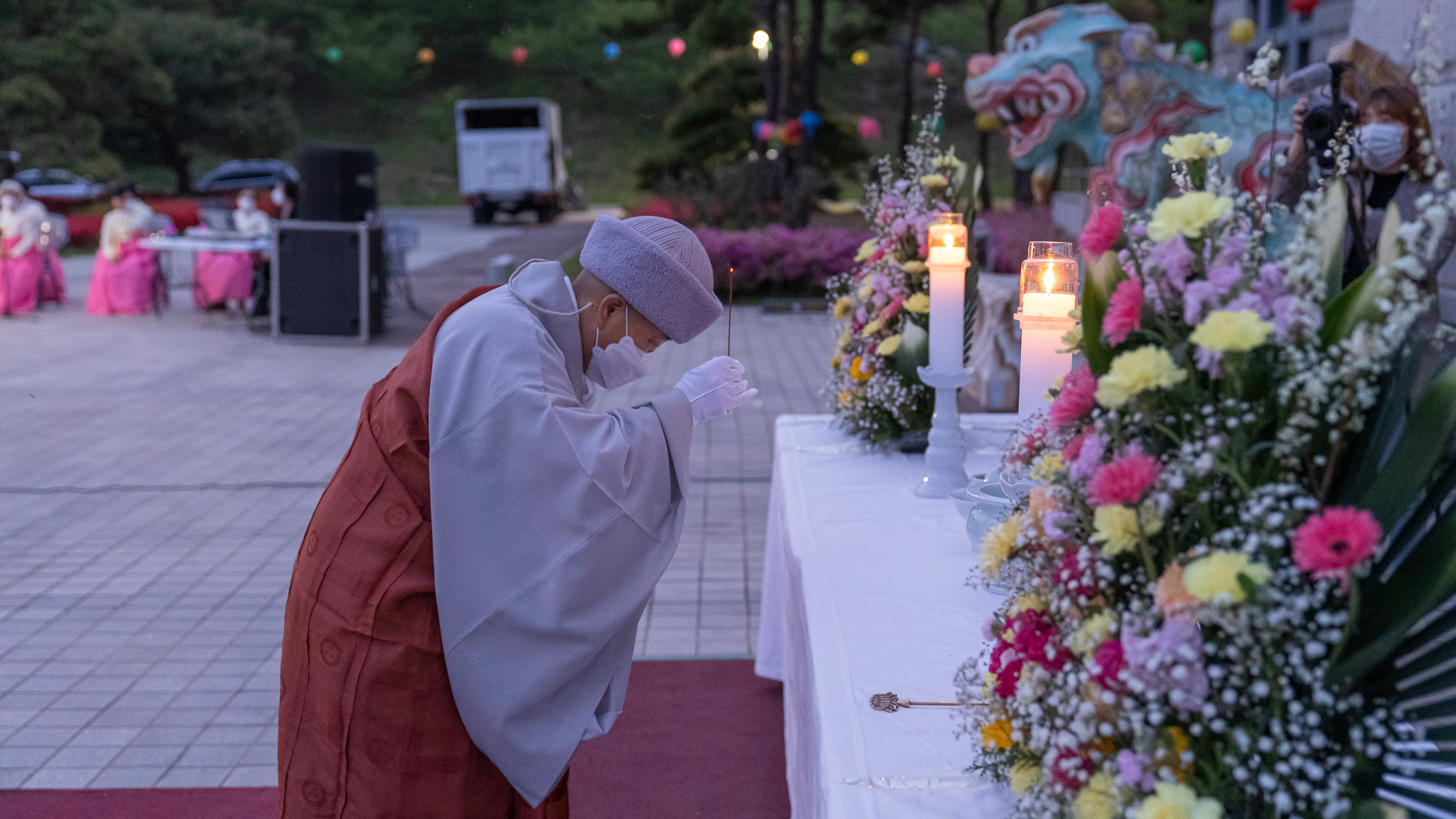 불기 2565년 부처님 오신 날을 맞이하여 모든 중생에게 부처님의 자비와 지혜의 사상을 구현하는 연등을 밝혀 부처님의 자비 광명이 함께 하길 기원하고 코로나19 국난극복을 위해 마련된 이번 점등식은 삼귀의, 반야심경, 헌향과 헌등, 헌화, 축원 및 봉축법어, 점등, 사홍서원 순으로 진행됐다.