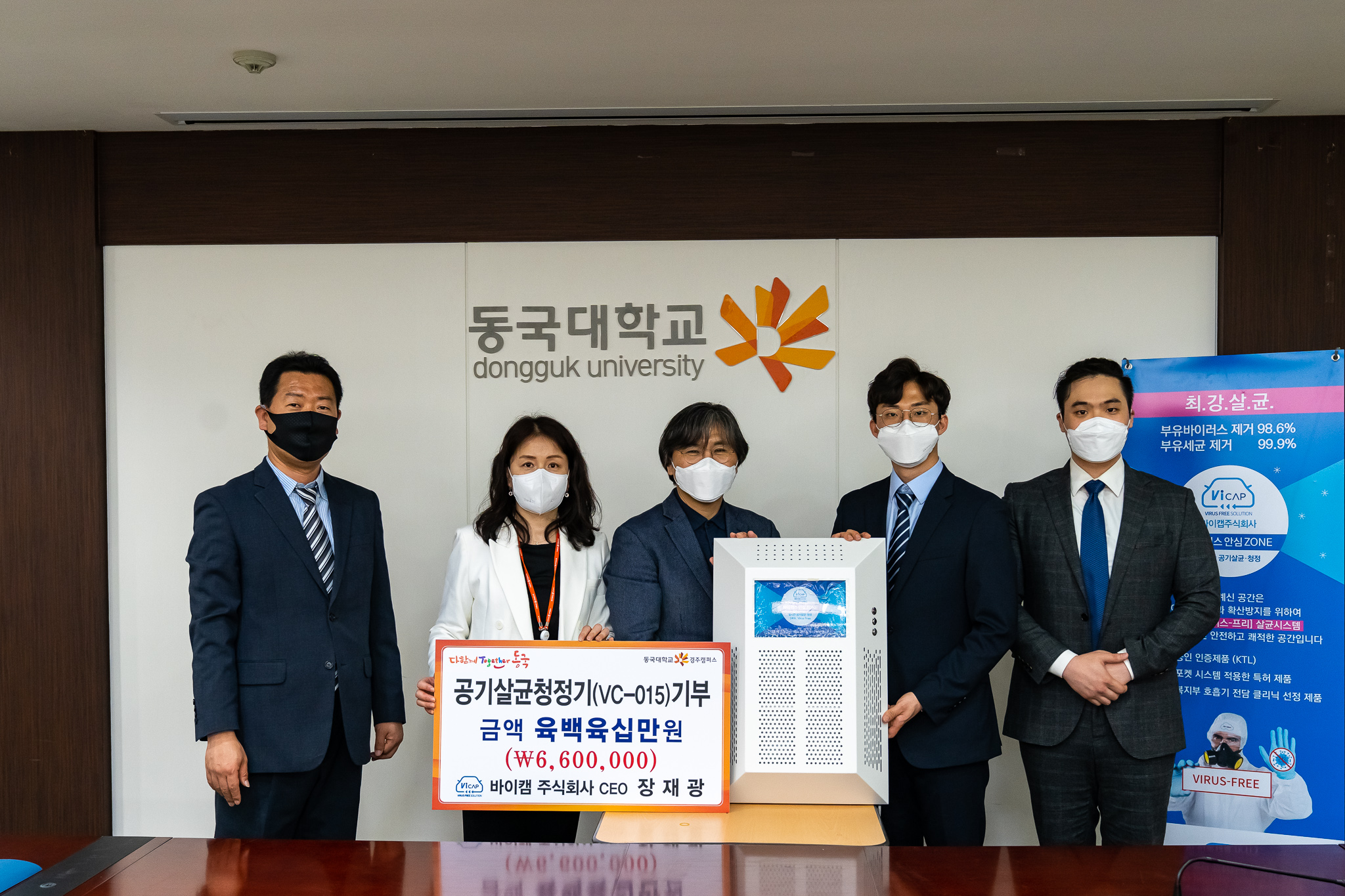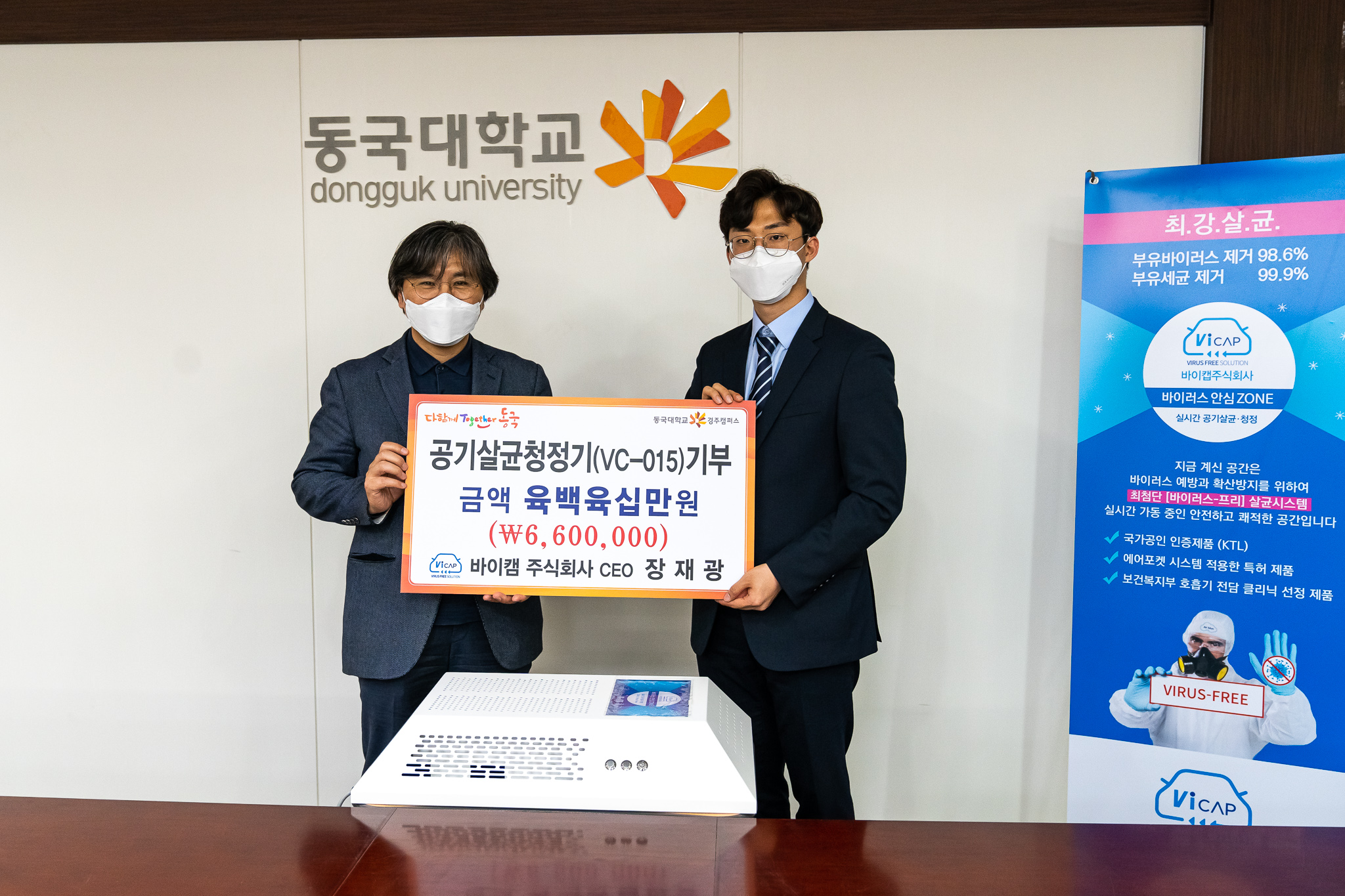 장재광 바이캡주식회사 대표가 동국대 경주캠퍼스에 공기살균청정기 2대를 기증했다.