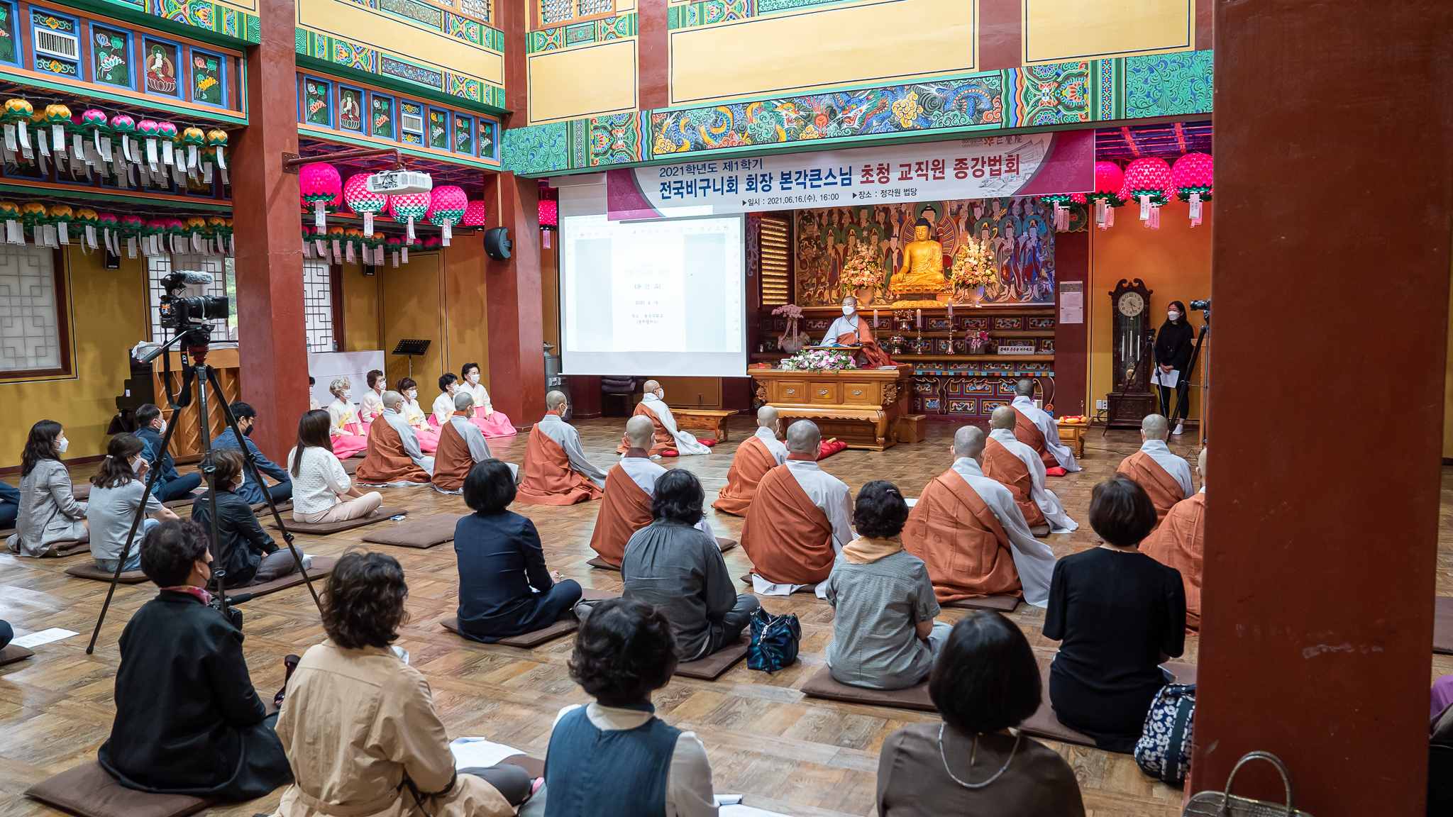 동국대학교 경주캠퍼스 정각원(원장 철우스님)은 불기2565(2021)년 6월 16일 교내 정각원 법당에서 전국비구니회 회장 본각스님을 초청하여 2021학년도 1학기 교직원 종강법회를 봉행했다.