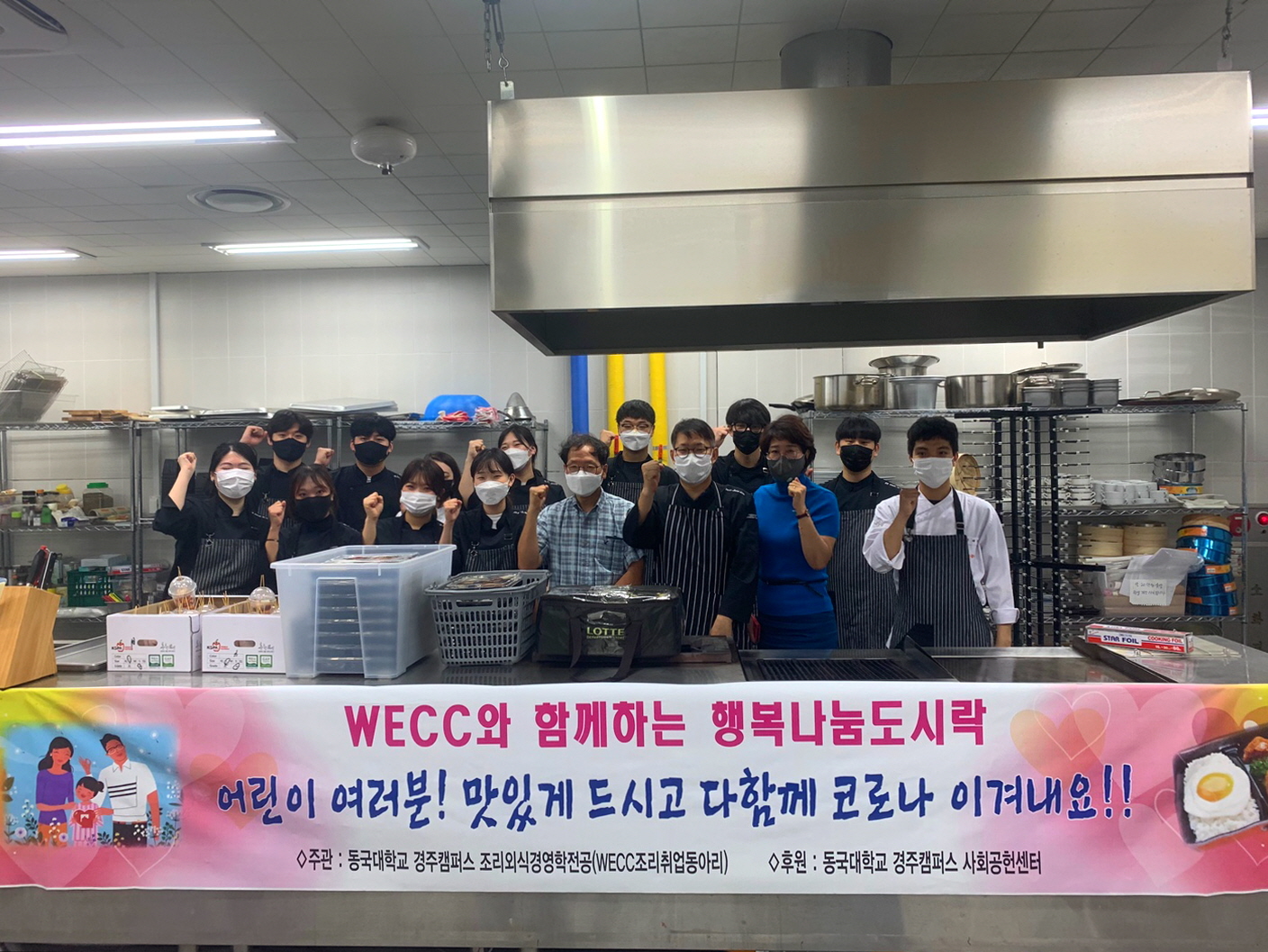 이번 도시락 전달은 경주시 공모 사업인 ‘지역과 함께하는 대학생 봉사단 지원’사업의 일환으로 조리 취업동아리 ‘WECC’ 가 학교에서 배운 요리 실력을 살려 만든 도시락으로 코로나19로 지친 지역 아동들을 격려하기 위해 이루어졌다.