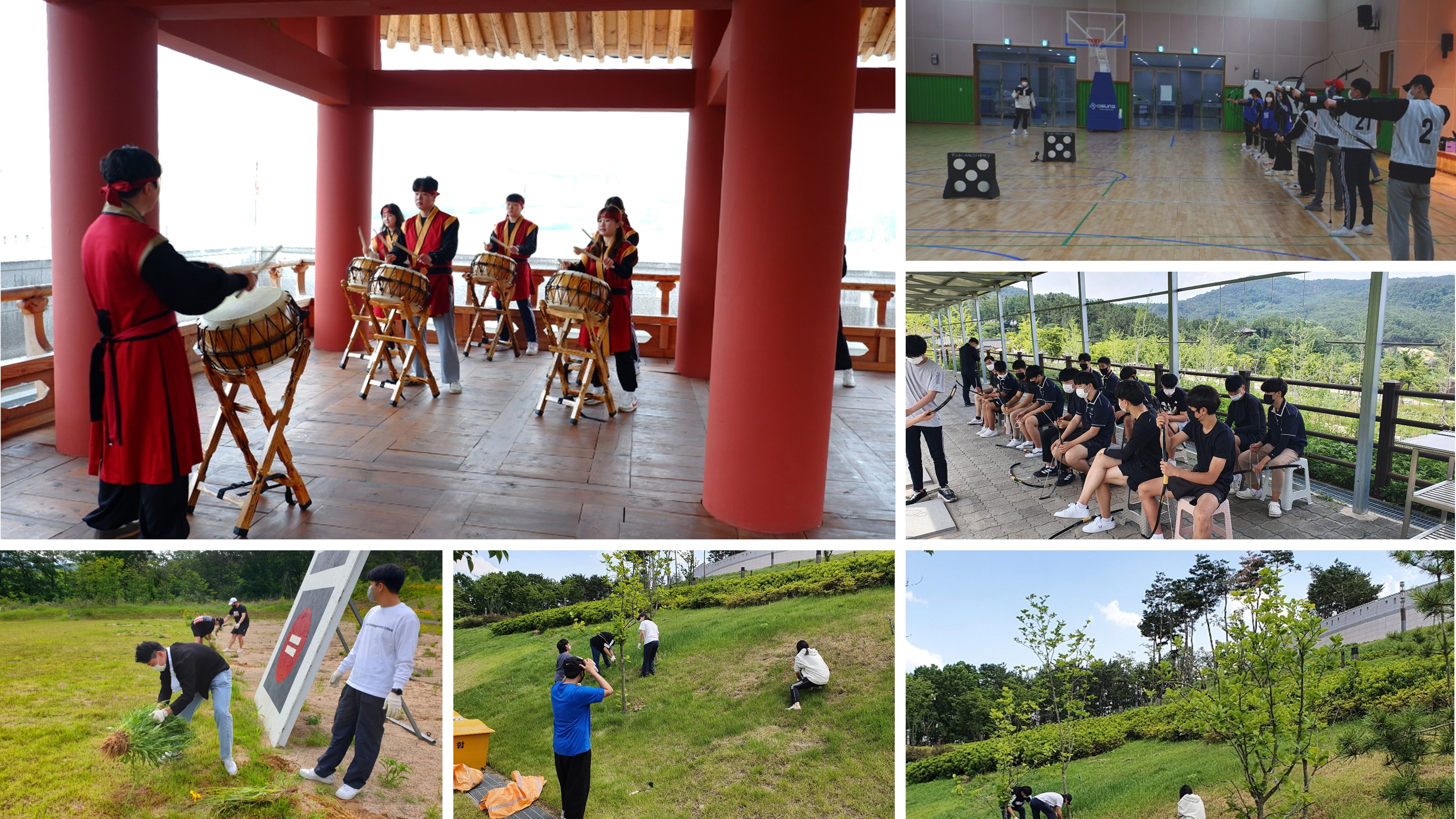 학생복지위원회를 중심으로 한 10여명의 재학생 봉사자들은 더운 날씨 속에서도 화랑마을 국궁체험, 난타공연, 수련시설 이용 및 화랑마을 홍보 영상제작과 주변의 풀 뽑기 환경정화 활동 등의 활동으로 지역사회에 대한 봉사활동을 했다.
