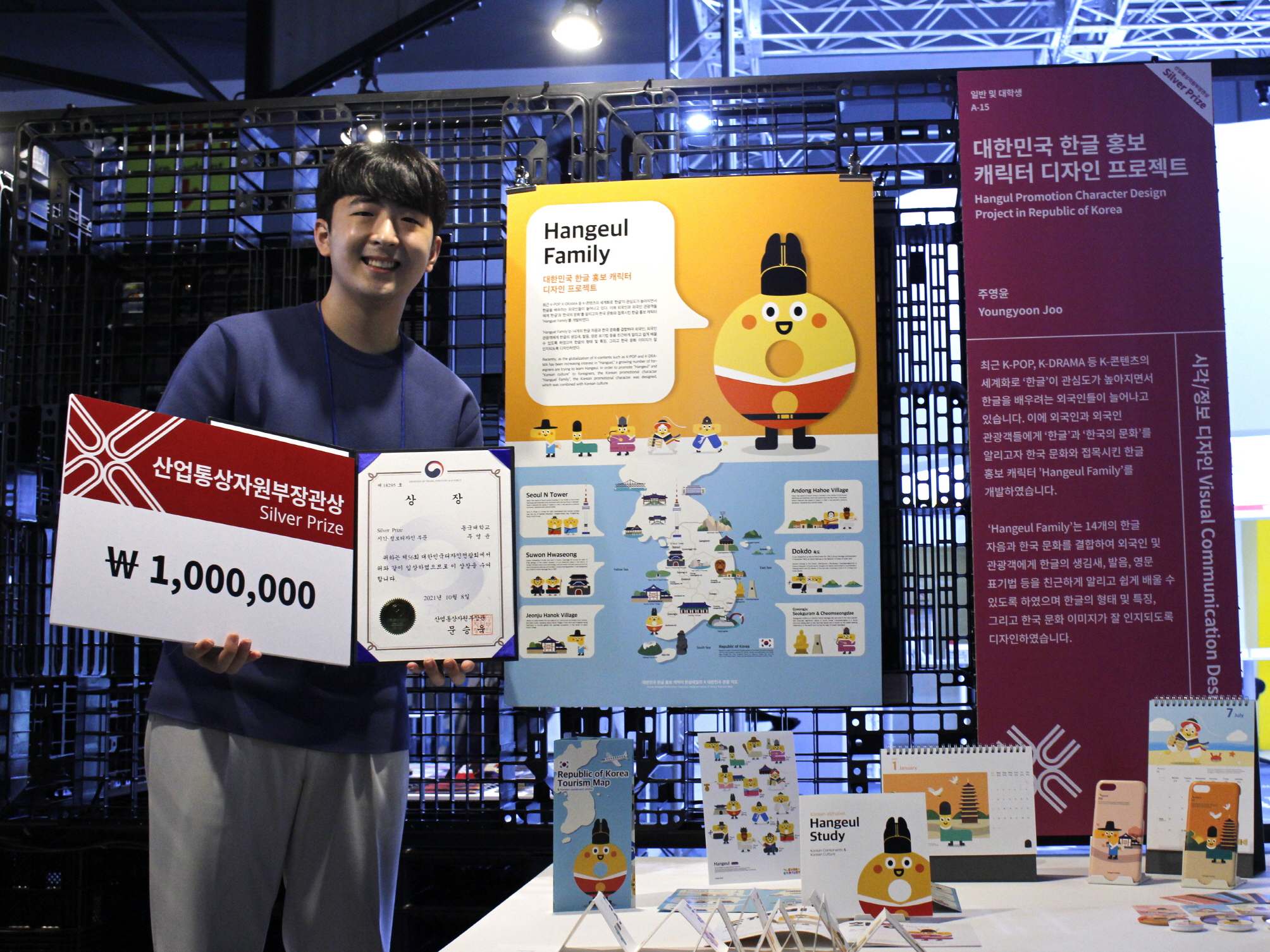 주영윤 씨는 ‘대한민국 한글 홍보 캐릭터 디자인 프로젝트’를 출품하여 총 3차례의 심사를 거쳐 전국에서 출품된 2200여 개의 작품 중에서 은상인 산업통상자원부 장관상을 수상했다.