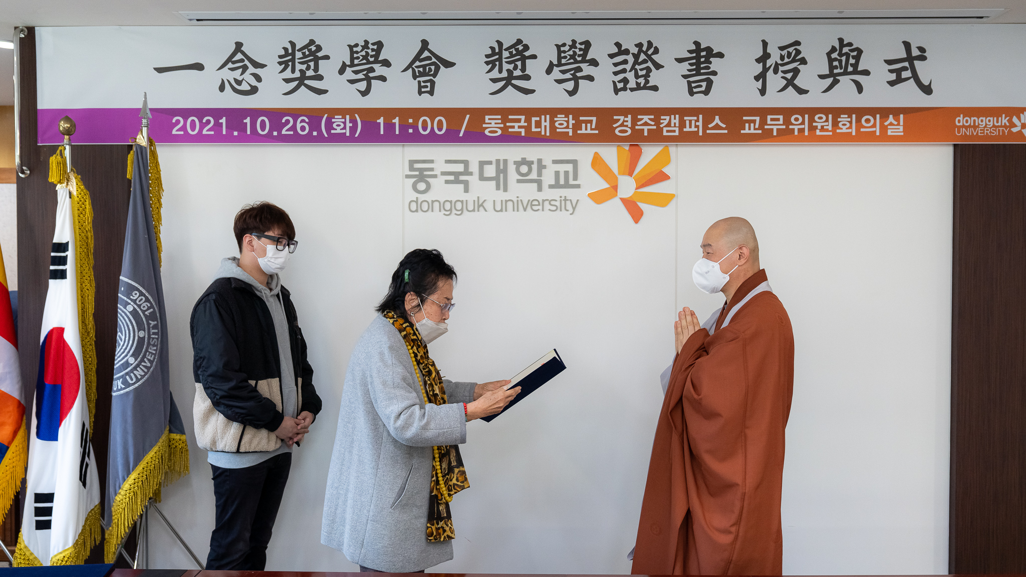 한편 이날 이영경 동국대 경주캠퍼스총장은 일념장학회 이영채 이사장과 최금순, 박연이 이사에게 동국대 경주캠퍼스 불교 인재 양성을 위한 장학 후원에 대해 감사패를 전했다.