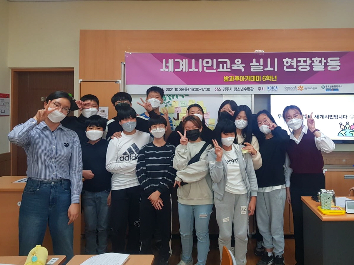 동국대 경주캠퍼스 국제개발협력 이해증진사업단(단장 경영학부 이영찬 교수)이 지난 10월 27일과 28일 이틀 동안 경주시 청소년수련관 청소년활동지원팀과 협력하여 방과 후 아카데미 프로그램에 참여하고 있는 초등학교 4, 5, 6학년 학생들을 대상으로 세계시민교육 현장활동을 진행했다.