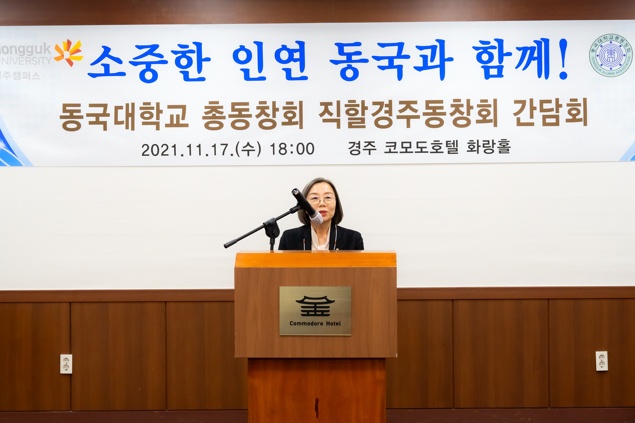 이영경 동국대 경주캠퍼스총장은 “여러 상황 속에서도 경주캠퍼스는 미래 경쟁력을 갖기 위해 노력하고 있으며 여러 면에서 성과를 내고 있다. 오늘 대학의 현황을 동창회와 공유할 수 있는 의미있는 시간을 갖게 되어 기쁘게 생각하며, 학교가 더욱 더 경쟁력을 강화하고 발전해 나갈 수 있도록 동창회에서도 많은 관심을 갖고 도와주시기 바란다.”고 말했다.