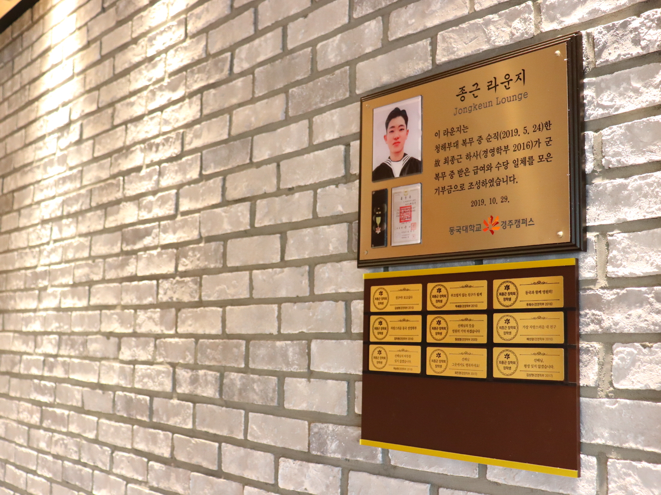 동국대 경주캠퍼스는 지난 25일 오후 4시 교내 진흥관 종근라운지에서 “故 최종근 하사 장학금 수여식”을 개최했다.